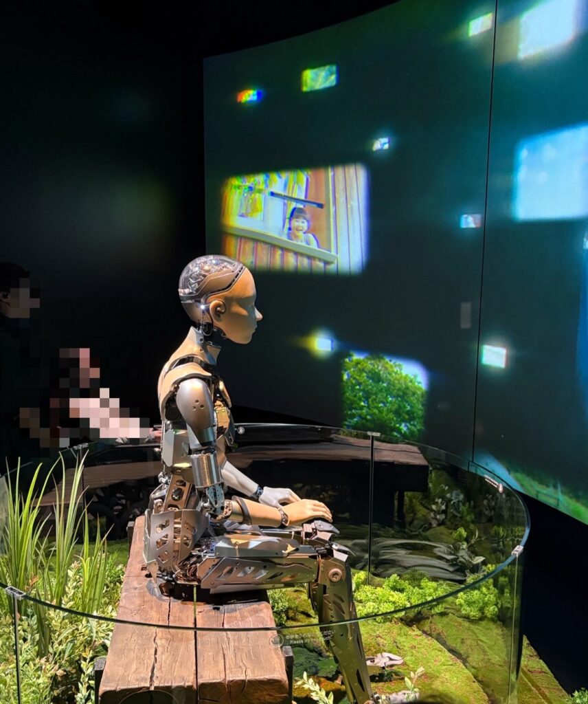 いのちの未来では、50年後、つまり 2075年 の未来を想定し、人間の能力の拡張、ロボット・アンドロイドとの共生、アバター技術などがどう「いのち」に影響をもたらすかを体感できる展示でした。安静で案内などを聞きながら進んでいくもので、今後私たちや周りの人のいのちについて考えることになる未来を示してくれていました。