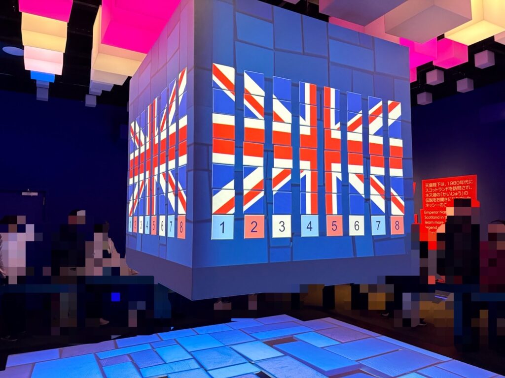 最後はゲームを通して、英国について勉強していきます。ボタンを押すことで英国の国旗をみんなで作り上げていくのです。また他にも日本と英国の関係性などについても知ることができました!(日本と英国はどちらも世界で特にたくさんお茶を飲む国らしいですよ)皆さんもどんな関係性があるのか、見て触れて体験してきてくださいね。